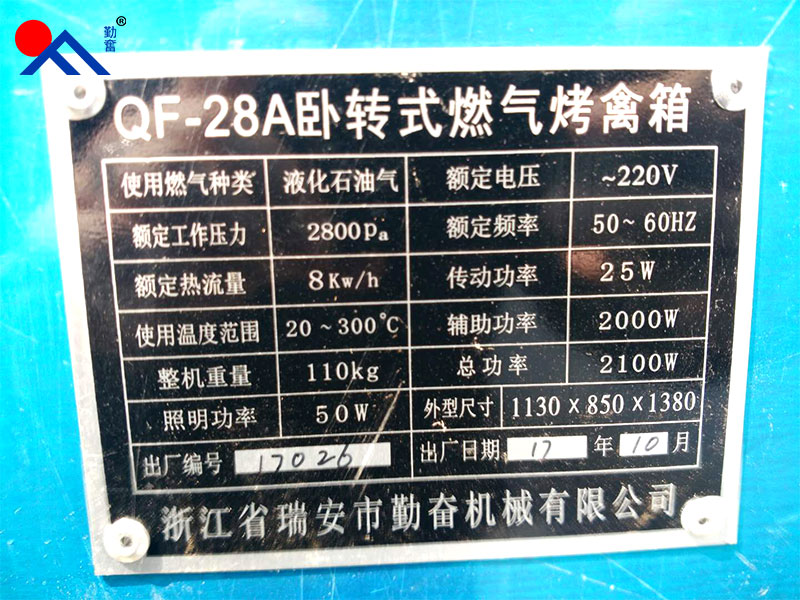 產(chǎn)品名稱:QF-28A型臥式燃氣電旋轉(zhuǎn)烤禽箱           電壓:220V